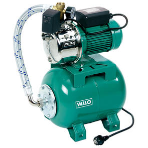 Helautomatisk pumpautomat med pumphus i rostfritt stål för rent vatten. Lämplig att använda till exempel i fritidshus eller i villor. Wilo Pumpautomat, HWJ 2EM, med trycktank, 20L. Utrustad med liters trycktank, tryckströmbrytare, överhettningsskyd elkabel med .