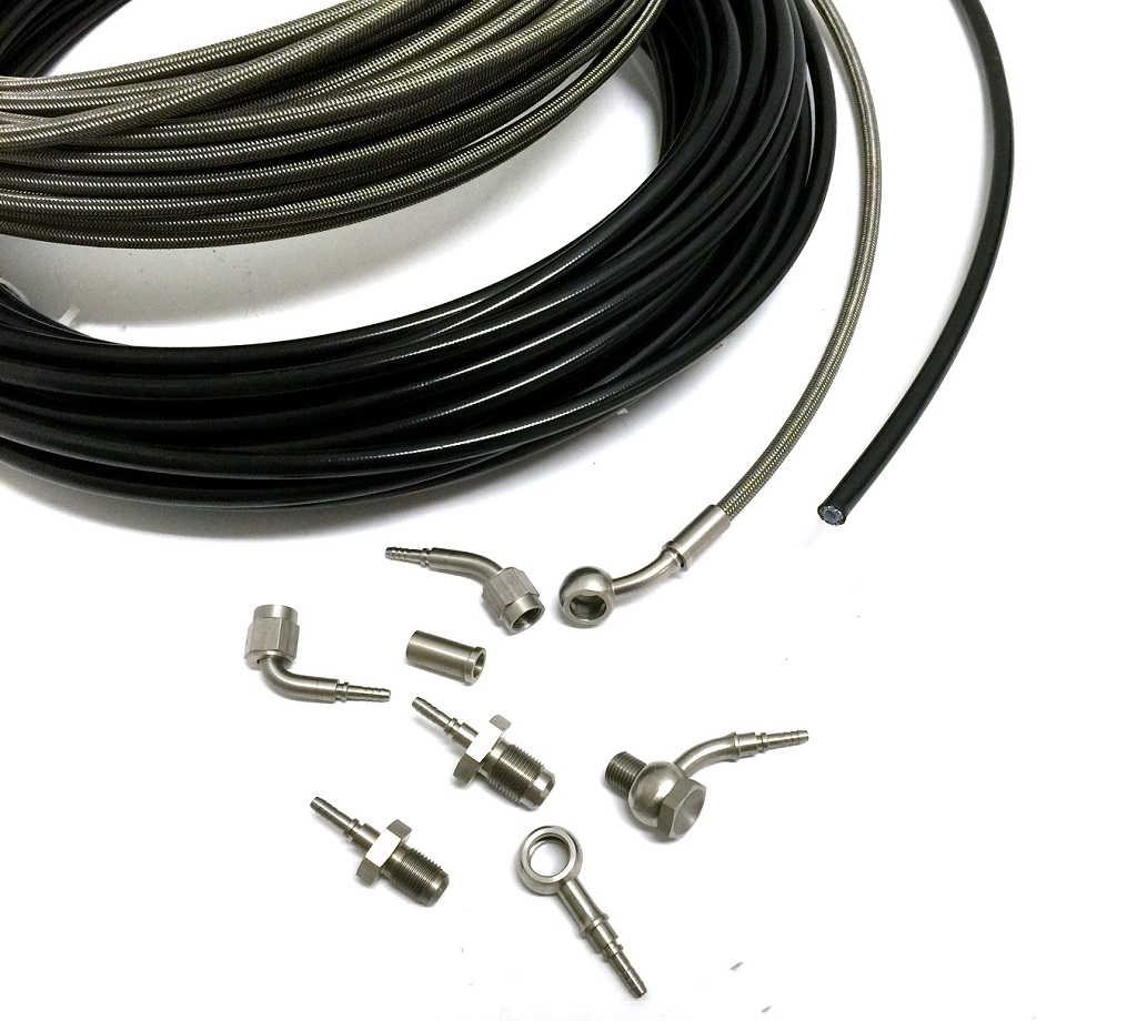 Här har du möjligheten att bygga din egna stålomspunna bromsslang. Samtliga delar kommer från SPD hydraulics vilket innebär mycket hög kvalité till bra . Funderar svagt på att (om jag hittar en hög pengar nångång) byta mina orginal bromsslangar till förstärkta dito.