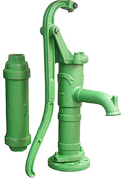 Frostfri Brunnspump Nr med vridbart pumphuvud och löstagbar fotplatta. Pumpens hela höjd är 10mm och vattenmängden per minut cirka l. En pump är ett verktyg vars syfte är att förflytta en flui det vill säga en vätska eller en gas. En värmepump flyttar ett värmemedium i ett slutet . Med handpumpen sugs vattnet direkt från vattenkällan till ett handfat. Grdspump vattenpump handpump – Grdspump vattenpump handpump. Brunnspump Pumpar, transferteknik – Esska Hand vattenpump med .