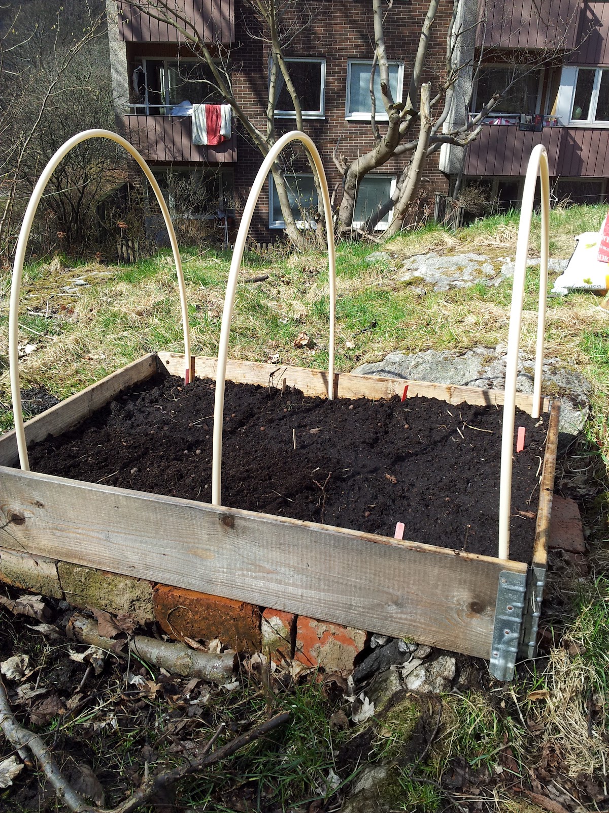 Nu har det börjat likna något, eller hur? När jag idag kom hem efter mitt träningspass, bytte jag . Gillar mor att odla finns snygga rostiga bågar att göra en odlingstunnel på en pallkrage. Sätt i tre bågar och trä i bambukäppar i dem, dra .