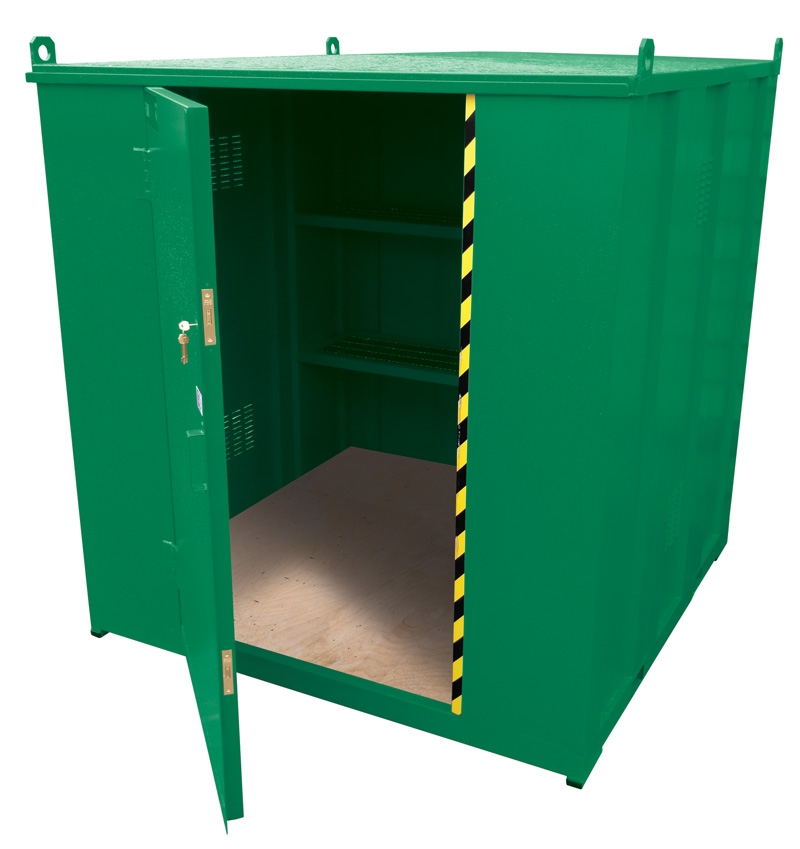 Valvcontainer verktygs container förrådscontainer liten smidig palltruck hantering handtruck. Verktygscontainer 4xmeter med två dörrar. Verktygscontainer i kraftig stålplåt för förvaring av verktyg etc. Båda storlekarna har gaffeluttag för smidig truckhantering.